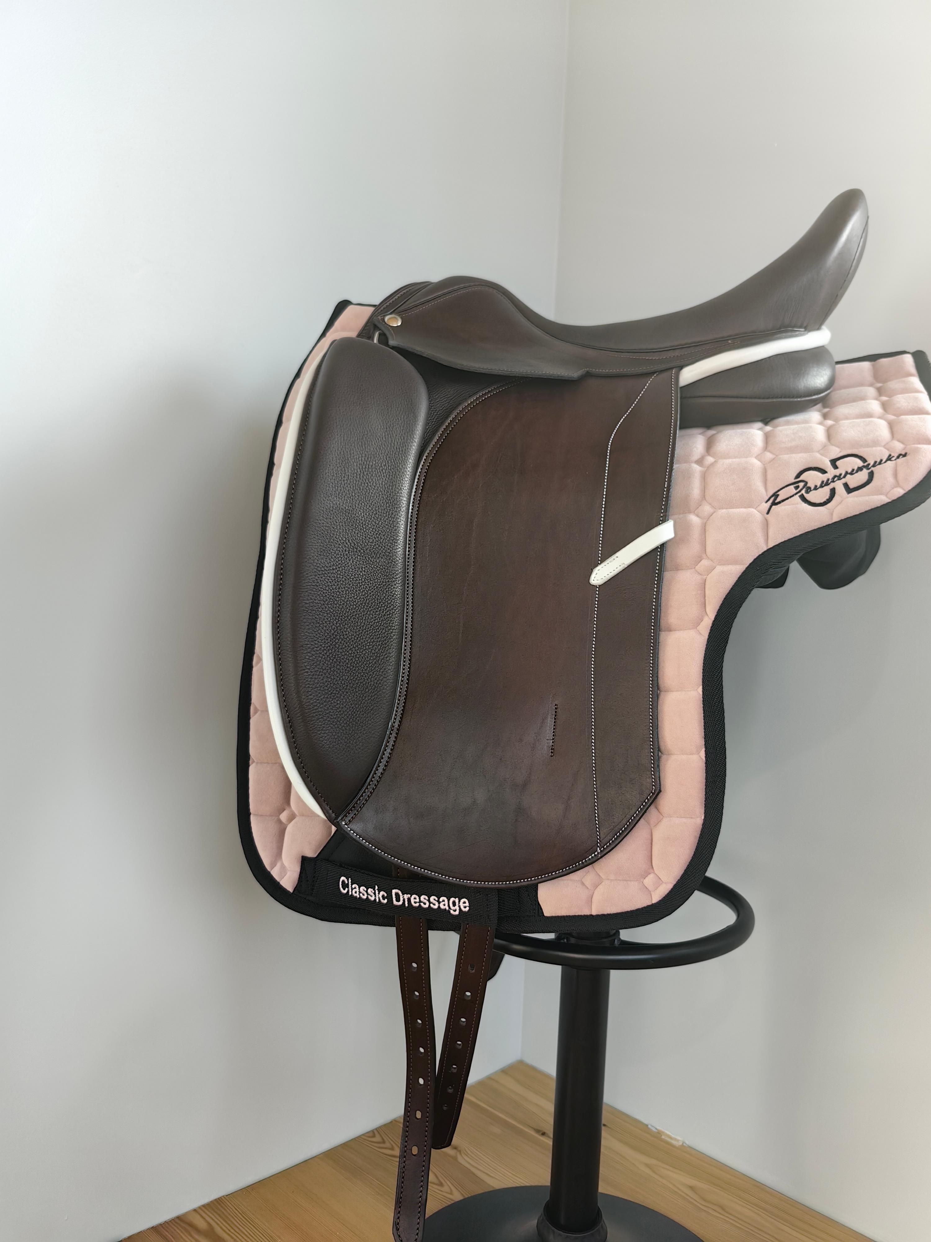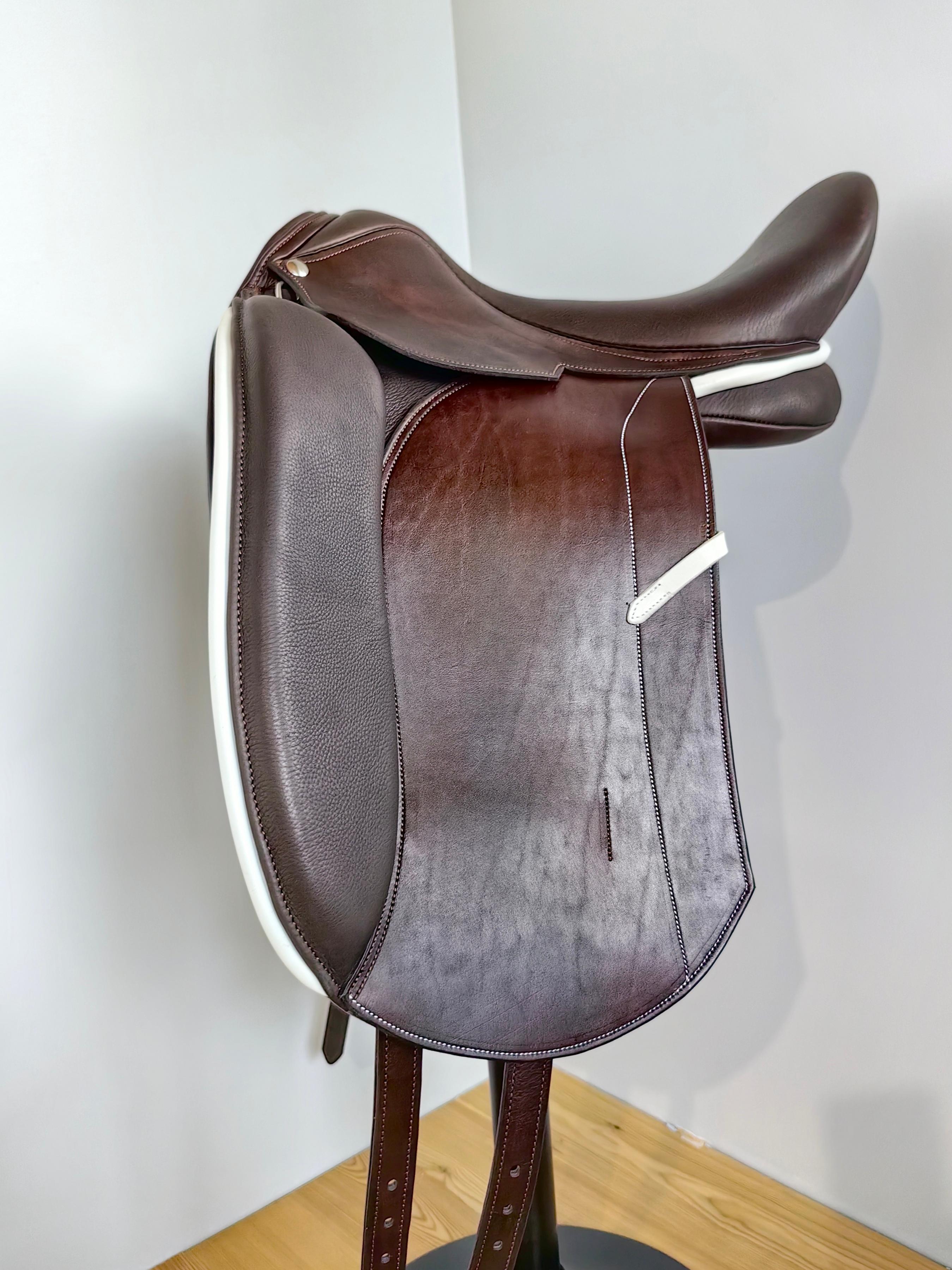 ВАЖНО!!! В цене указан 50% размер предоплаты при заказе Обращайте внимание на полную стоимость. Классическая выездковая посадка Высокая задняя лука Супер мягкое сиденье Расширенное внизу верхнее крыло Увеличенные передние упорные подушки по всей длине ноги Внутренние упоры Сбалансированные V-образные задние приструги Фиксирует сильно Крыло удлинённое для выдерживания ноги в максимально прямой Шлевка придерживания путлища у края крыла Эстетичный дизайн с контрастной отделкой Полностью натуральная кожа